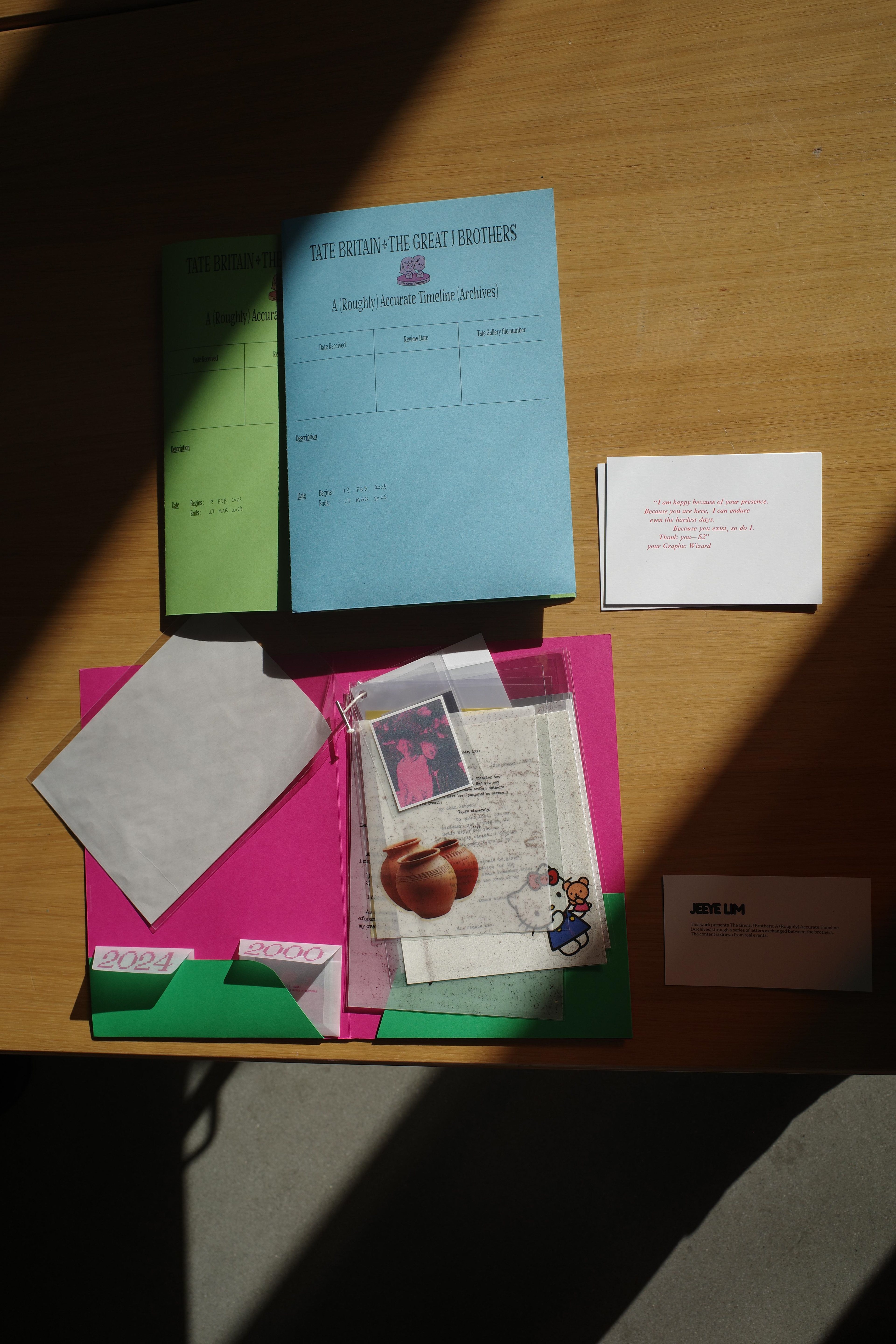 I archived a collection of documents that had been exchanged long ago and kept at Tate Britain. Drawing inspiration from them, I reinterpreted the material to tell my own story for the exhibition. Using real memories I shared with my older brother in the past, I created a series of fictional letters between us and documented the correspondence as part of the archive.